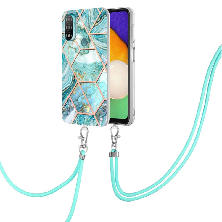 For Motorola Moto E20 / E30 / E40 Electroplating Splicing Marble TPU Phone Case with Lanyard(Blue)