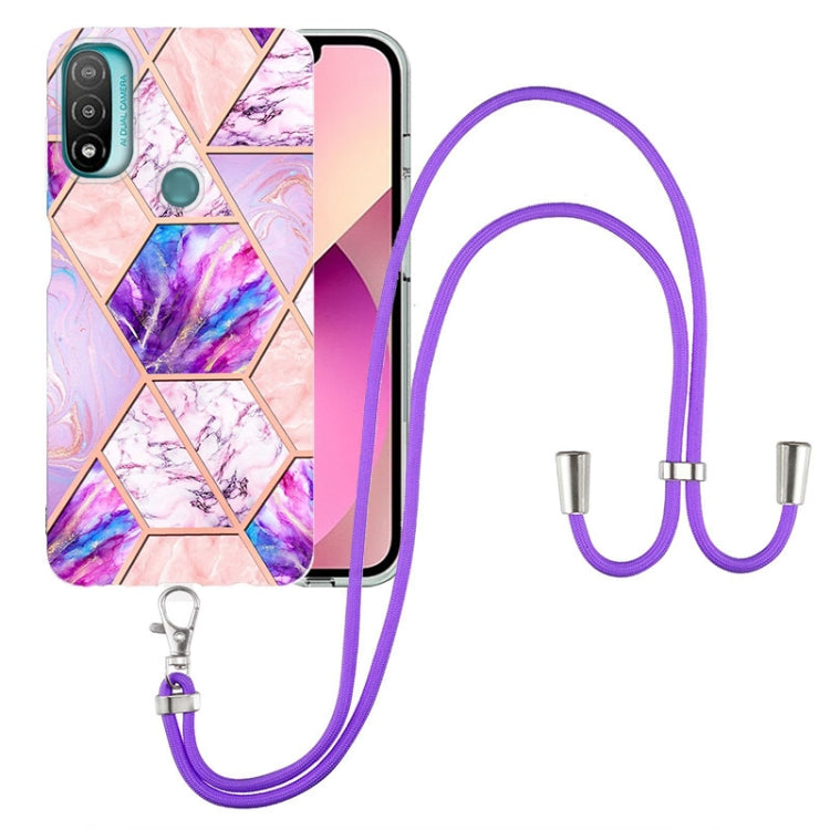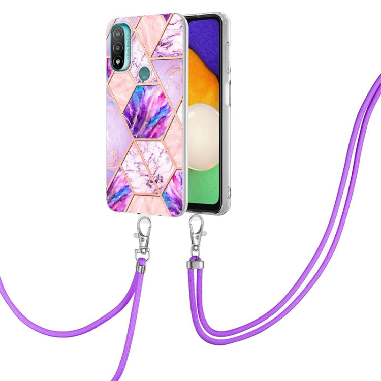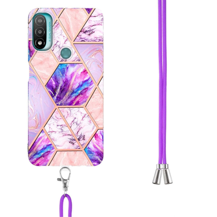 For Motorola Moto E20 / E30 / E40 Electroplating Splicing Marble TPU Phone Case with Lanyard(Light Purple)
