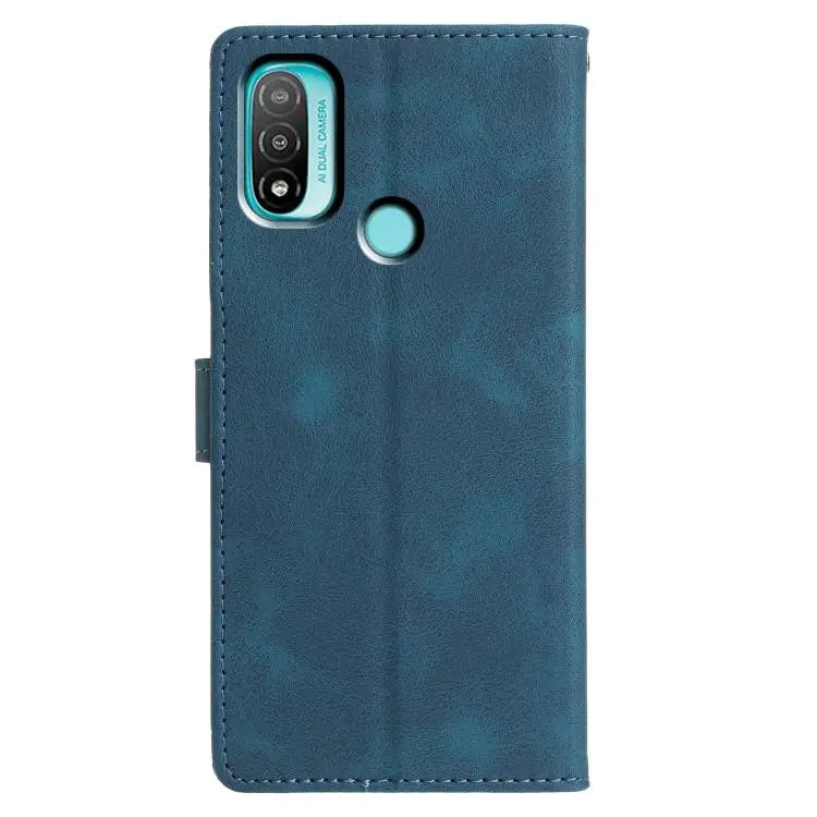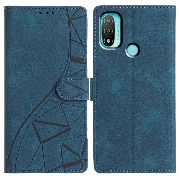 For Motorola Moto E20 / E30 / E40 Triangles Embossed Leather Phone Case(Blue)