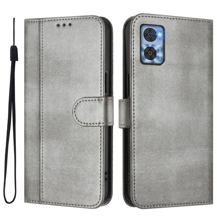 For Motorola Moto E22 4G / E22i 4G Line Splicing Buckle Retro Leather Phone Case(Grey)