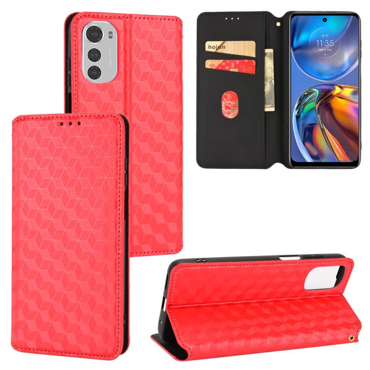 For Motorola Moto E32 4G / E32s Cubic Grid Texture Flip Leather Phone Case(Red)
