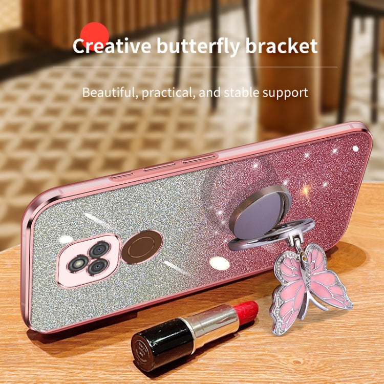 For Motorola Moto E7 Plus Plated Gradient Glitter Butterfly Holder TPU Phone Case(Silver)
