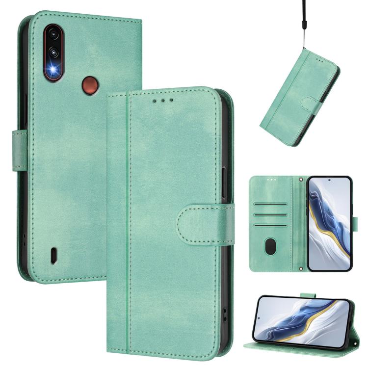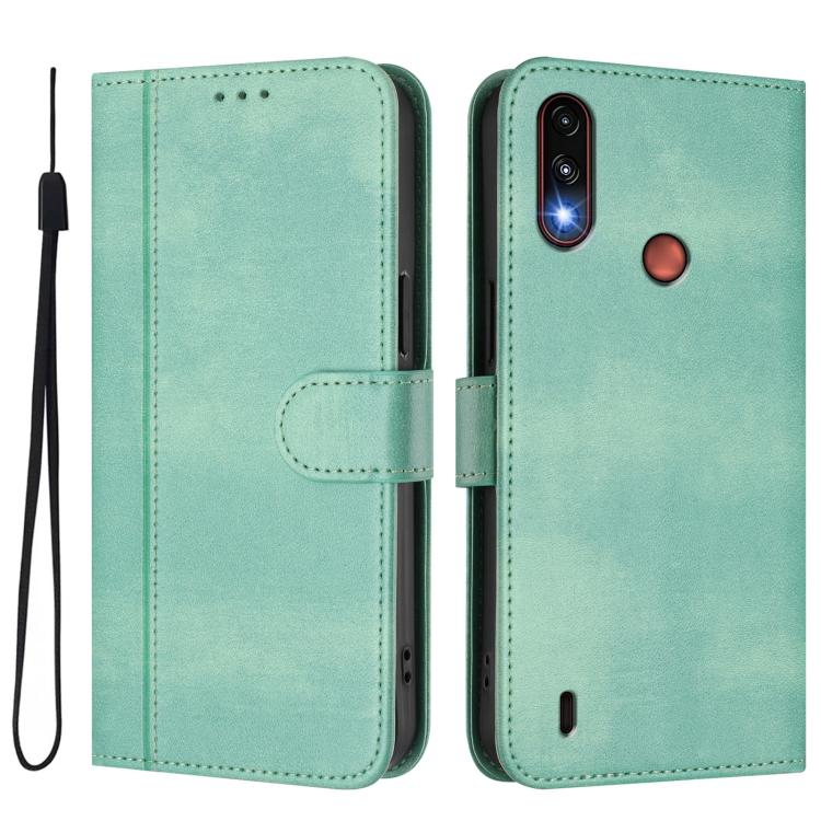 For Motorola Moto E7 Power 2021 Line Splicing Buckle Retro Leather Phone Case(Mint)