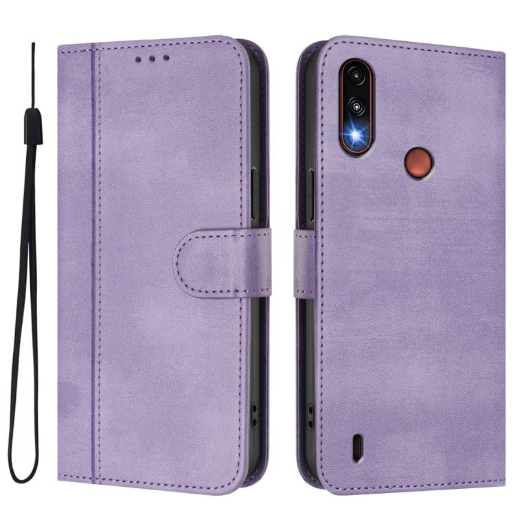 For Motorola Moto E7 Power 2021 Line Splicing Buckle Retro Leather Phone Case(Purple)