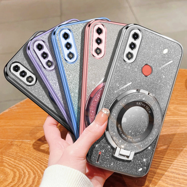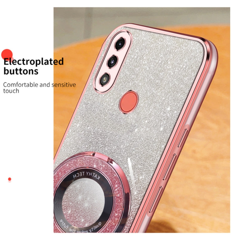 For Motorola Moto E7 Power Plated Gradient Glitter Round Holder TPU Phone Case(Pink)