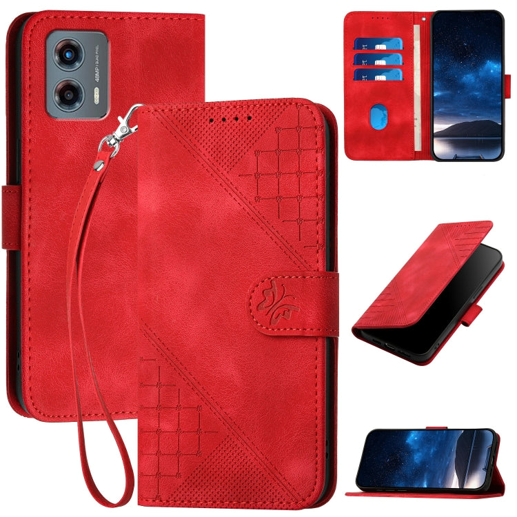 For Motorola Moto G 2023 5G Grid Butterfly Embossed Pattern Leather Phone Case with Lanyard(Red)