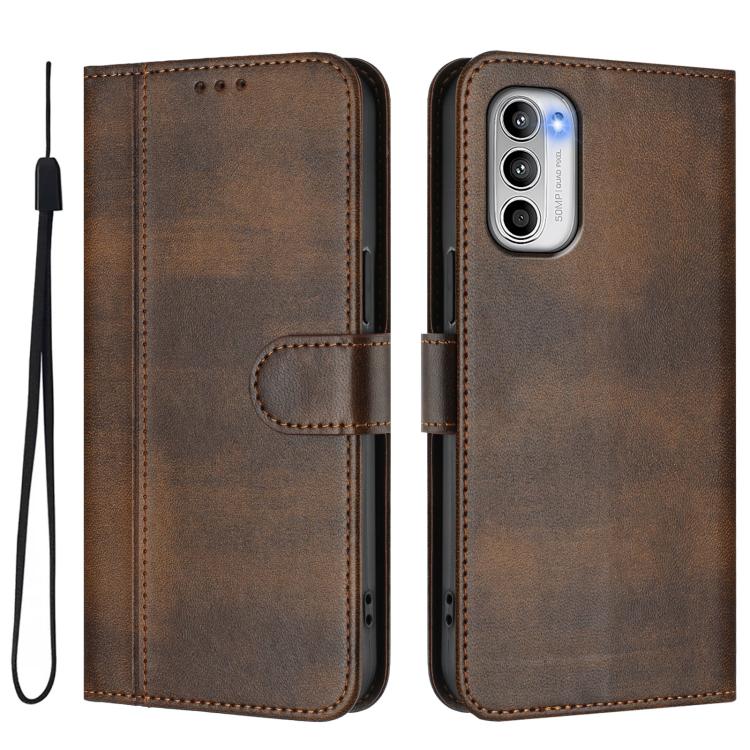 For Motorola Moto G 5G 2022 Line Splicing Buckle Retro Leather Phone Case(Brown)