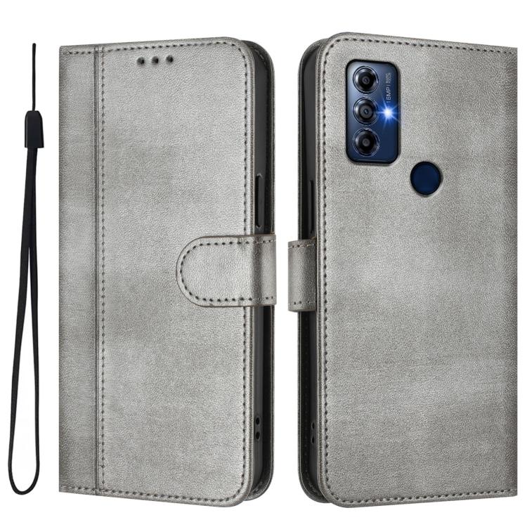For Motorola Moto G Play 2022 Line Splicing Buckle Retro Leather Phone Case(Grey)