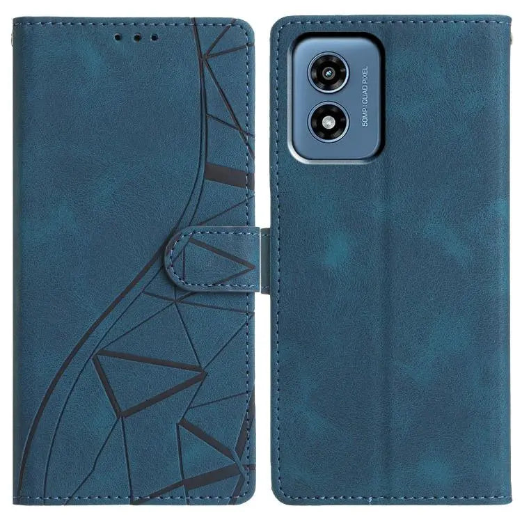 For Motorola Moto G Play 2024 Triangles Embossed Leather Phone Case(Blue)