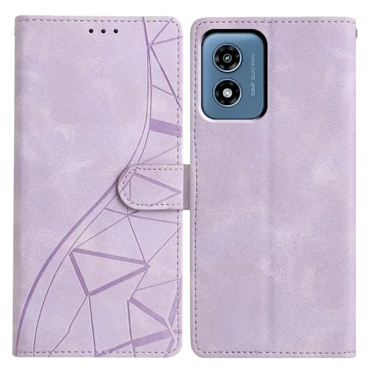 For Motorola Moto G Play 2024 Triangles Embossed Leather Phone Case(Purple)