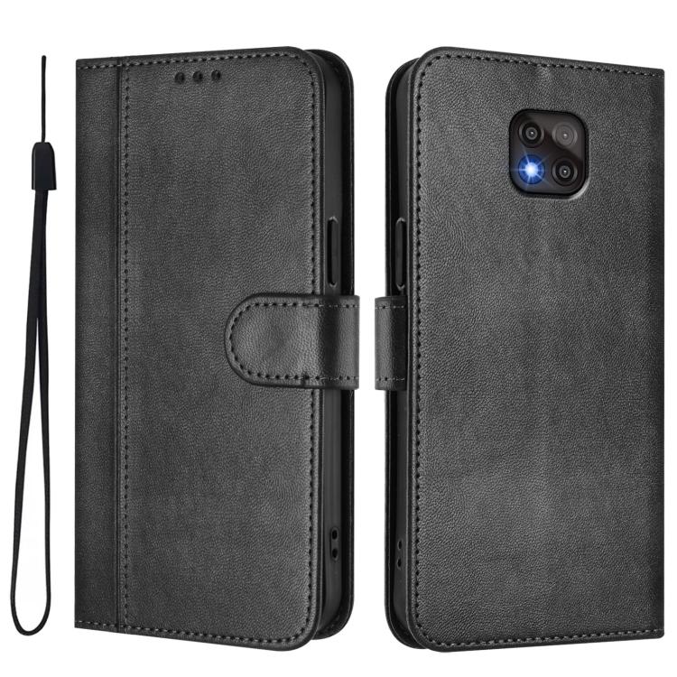 For Motorola Moto G Power 2021 Line Splicing Buckle Retro Leather Phone Case(Black)