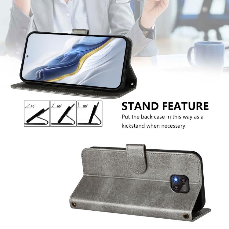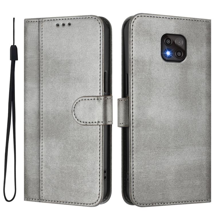 For Motorola Moto G Power 2021 Line Splicing Buckle Retro Leather Phone Case(Grey)