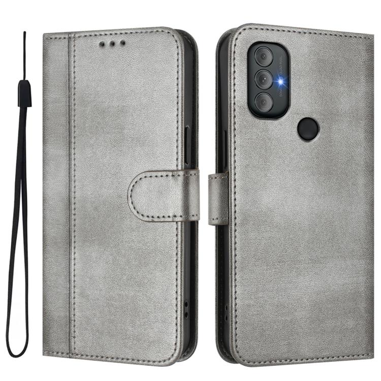 For Motorola Moto G Power 2022 Line Splicing Buckle Retro Leather Phone Case(Grey)