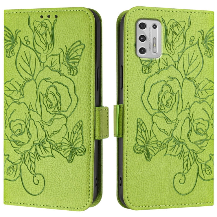 For Motorola Moto G Stylus 2021 4G Embossed Rose RFID Anti-theft Leather Phone Case(Green)