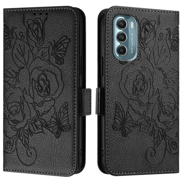 For Motorola Moto G Stylus 2022 5G Embossed Rose RFID Anti-theft Leather Phone Case(Black)