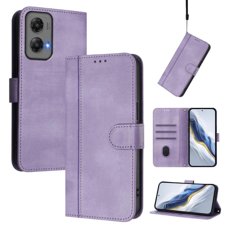 For Motorola Moto G Stylus 5G 2024 Line Splicing Buckle Retro Leather Phone Case(Purple)