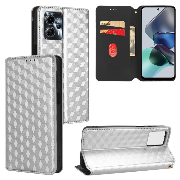 For Motorola Moto G13 / G23 Cubic Grid Texture Flip Leather Phone Case(Silver)