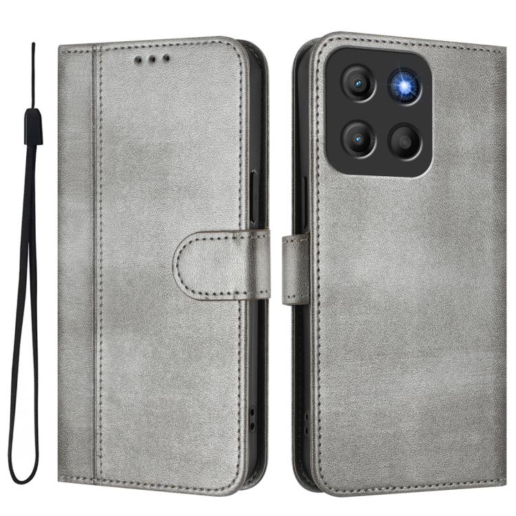 For Motorola Moto G15 / G15 Power Line Splicing Buckle Retro Leather Phone Case(Grey)