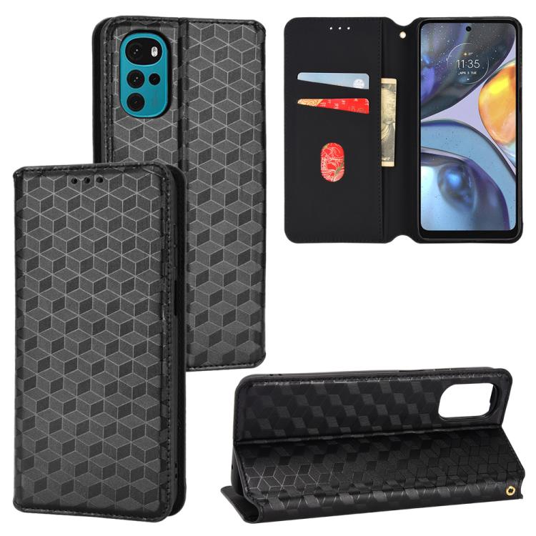 For Motorola Moto G22 4G Cubic Grid Texture Flip Leather Phone Case(Black)