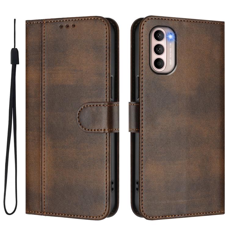 For Motorola Moto G31 4G Global / G41 4G Line Splicing Buckle Retro Leather Phone Case(Brown)