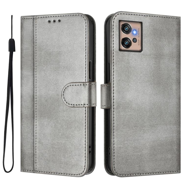 For Motorola Moto G32 Line Splicing Buckle Retro Leather Phone Case(Grey)