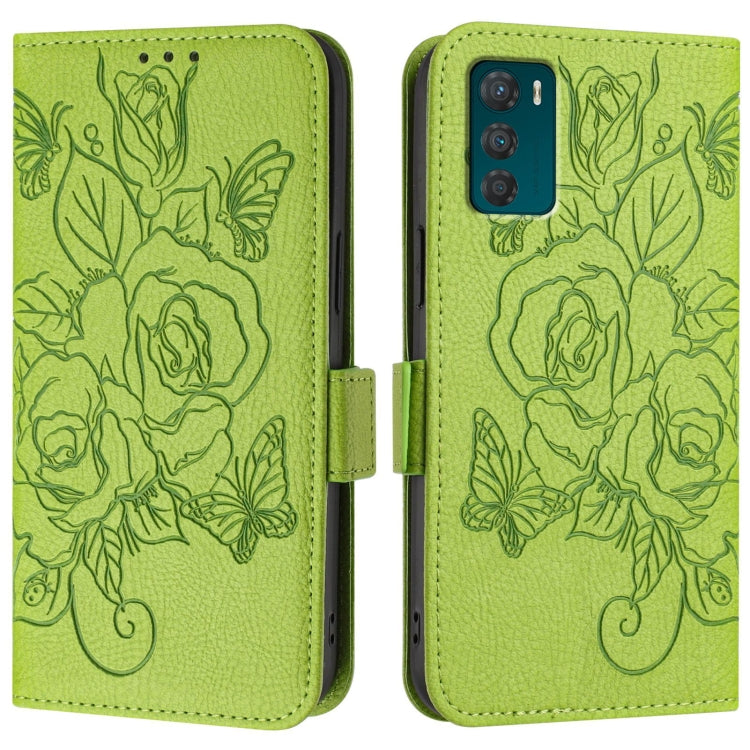 For Motorola Moto G42 Embossed Rose RFID Anti-theft Leather Phone Case(Green)