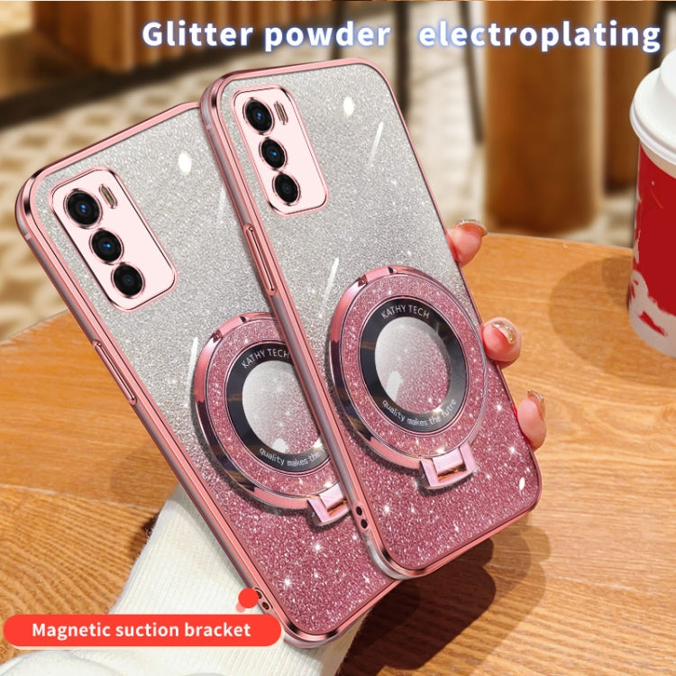 For Motorola Moto G42 Plated Gradient Glitter Round Holder TPU Phone Case(Black)