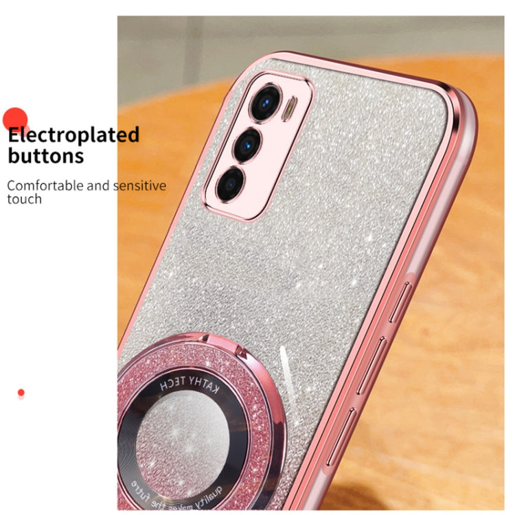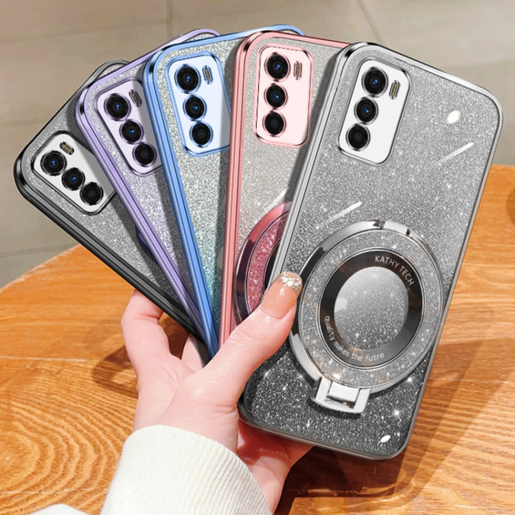 For Motorola Moto G42 Plated Gradient Glitter Round Holder TPU Phone Case(Purple)
