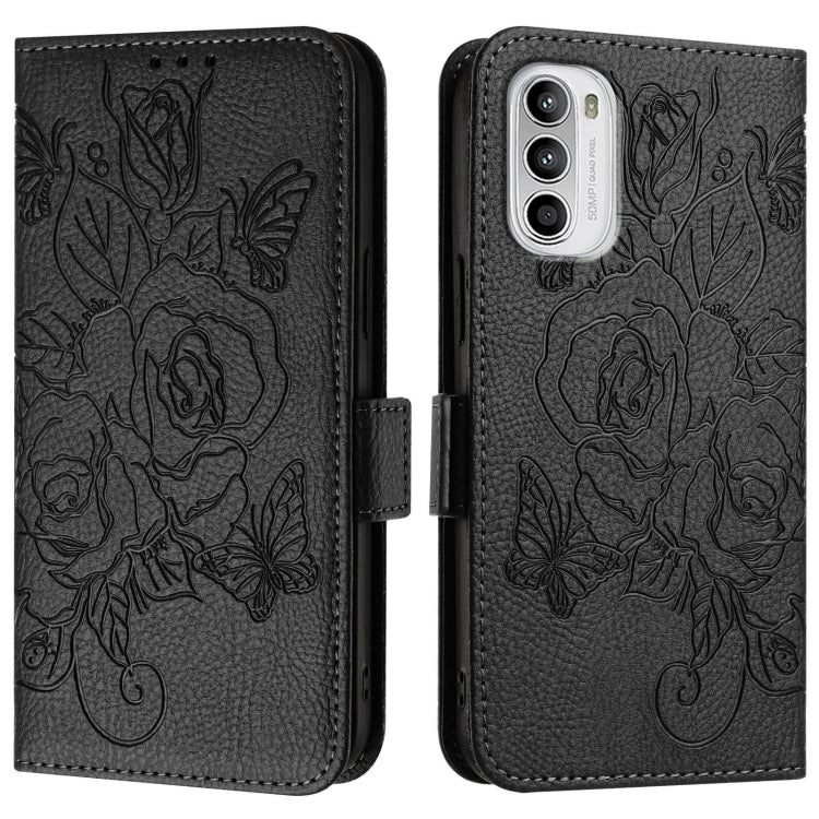 For Motorola Moto G52 4G / G82 5G / G71s 5G Embossed Rose RFID Anti-theft Leather Phone Case(Black)