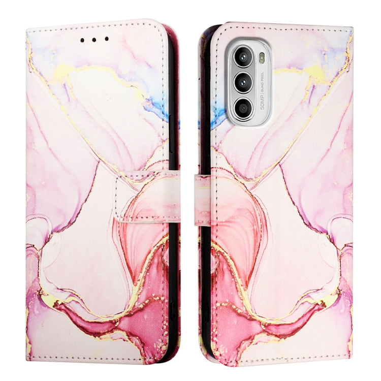 For Motorola Moto G52 / G82 / G71s PT003 Marble Pattern Flip Leather Phone Case(Rose Gold)