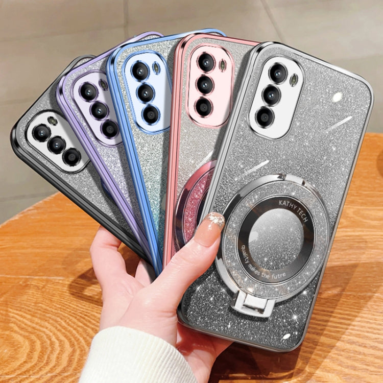 For Motorola Moto G52 / G82 Plated Gradient Glitter Round Holder TPU Phone Case(Pink)