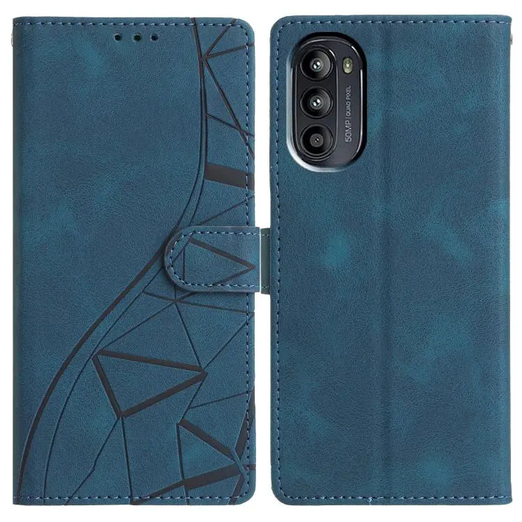 For Motorola Moto G52 Triangles Embossed Leather Phone Case(Blue)