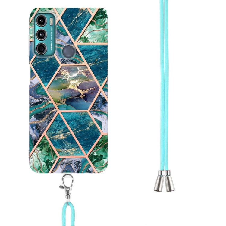 For Motorola Moto G60 / G40 Fusion Electroplating Splicing Marble TPU Phone Case with Lanyard(Blue Green)