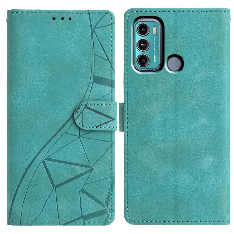 For Motorola Moto G60 Triangles Embossed Leather Phone Case(Green)