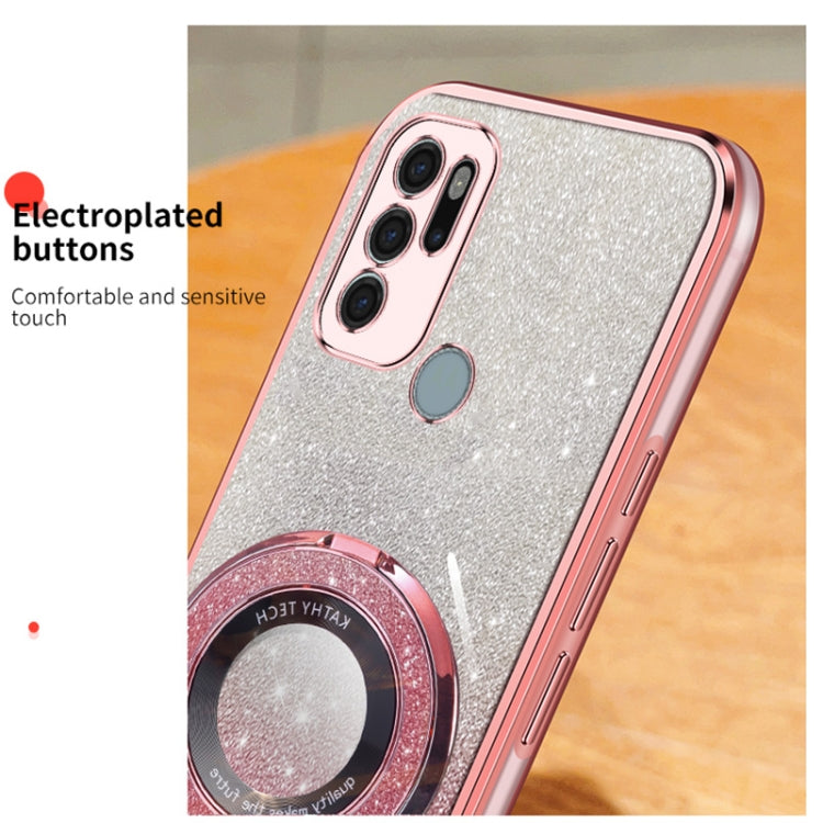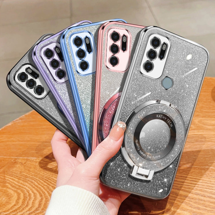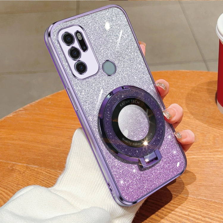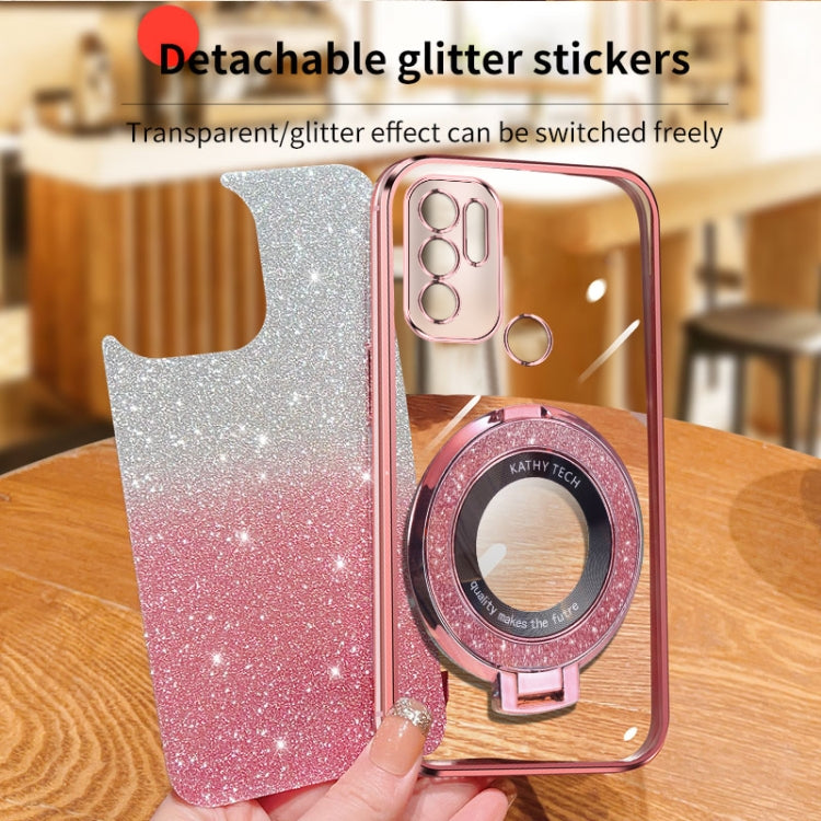 For Motorola Moto G60S Plated Gradient Glitter Round Holder TPU Phone Case(Purple)