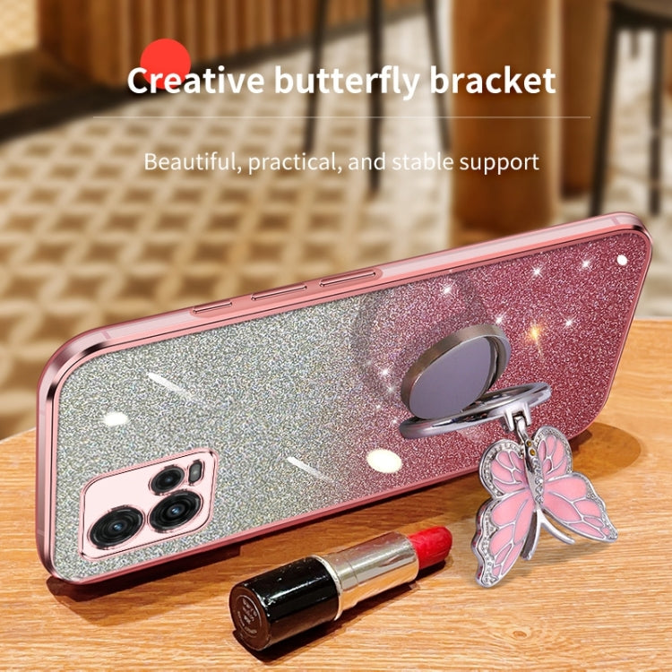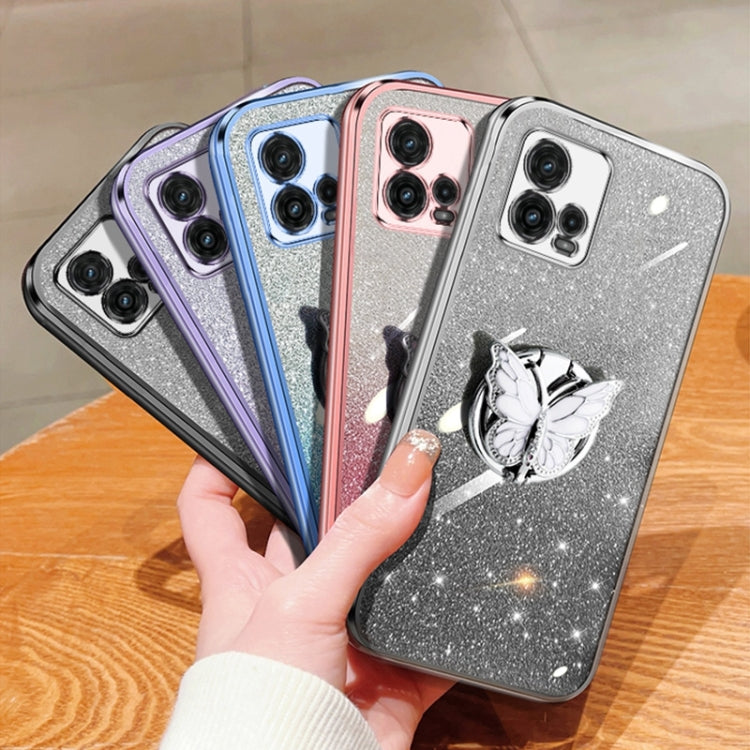 For Motorola Moto G72 Plated Gradient Glitter Butterfly Holder TPU Phone Case(Pink)