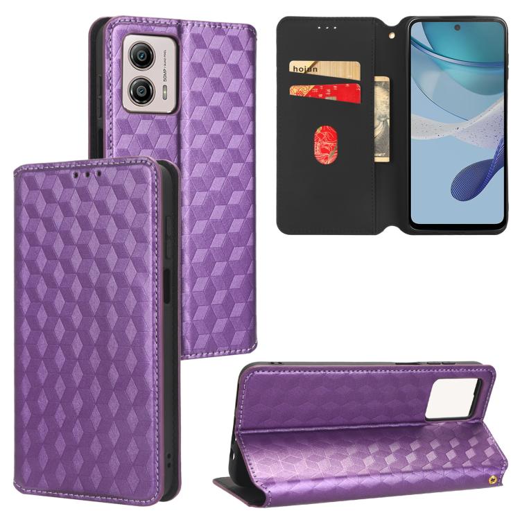 For Motorola Moto G73 5G Cubic Grid Texture Flip Leather Phone Case(Purple)