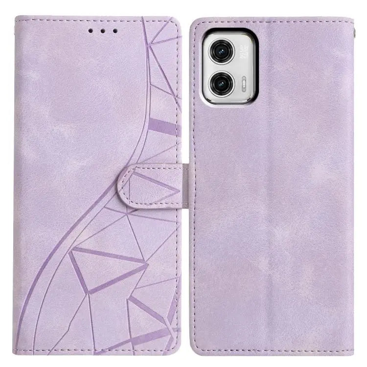 For Motorola Moto G73 Triangles Embossed Leather Phone Case(Purple)