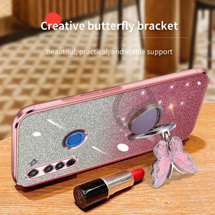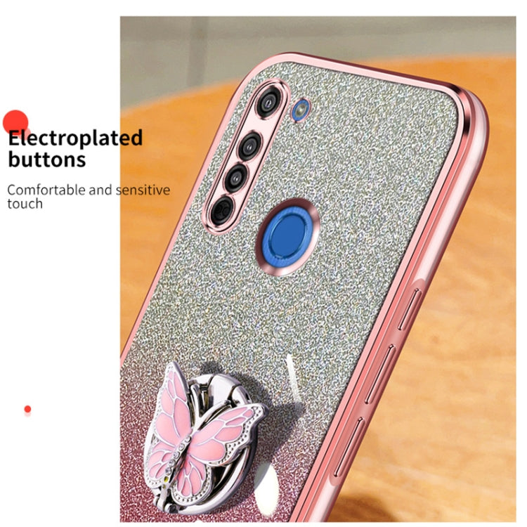 For Motorola Moto G8 Plated Gradient Glitter Butterfly Holder TPU Phone Case(Pink)