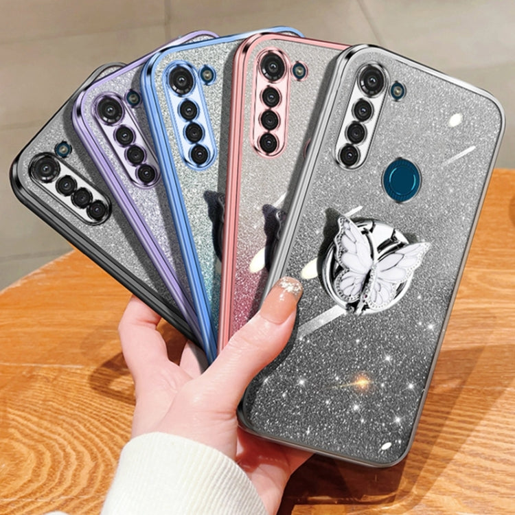For Motorola Moto G8 Power Plated Gradient Glitter Butterfly Holder TPU Phone Case(Black)