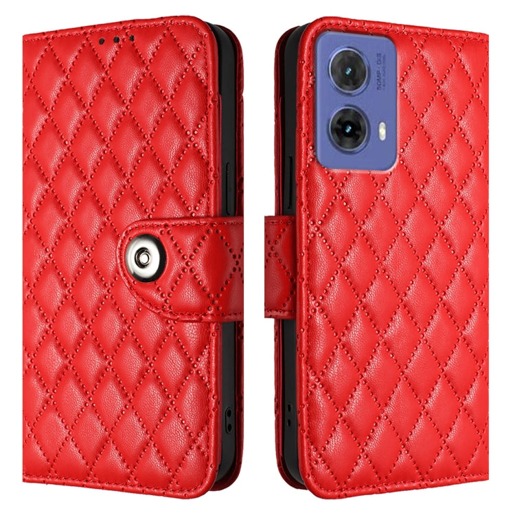 For Motorola Moto G85 Rhombic Texture Flip Leather Phone Case with Lanyard(Red)