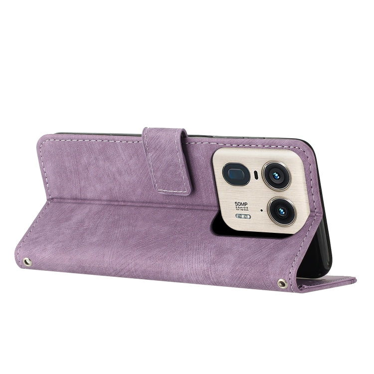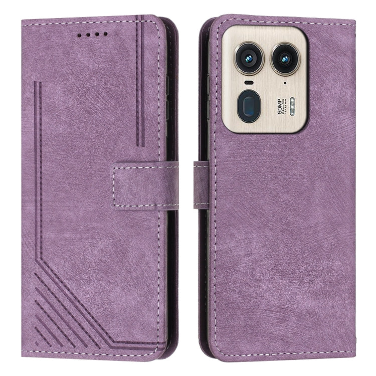 For Motorola Moto X50 Ultra Skin Feel Stripe Pattern Leather Phone Case with Lanyard(Purple)