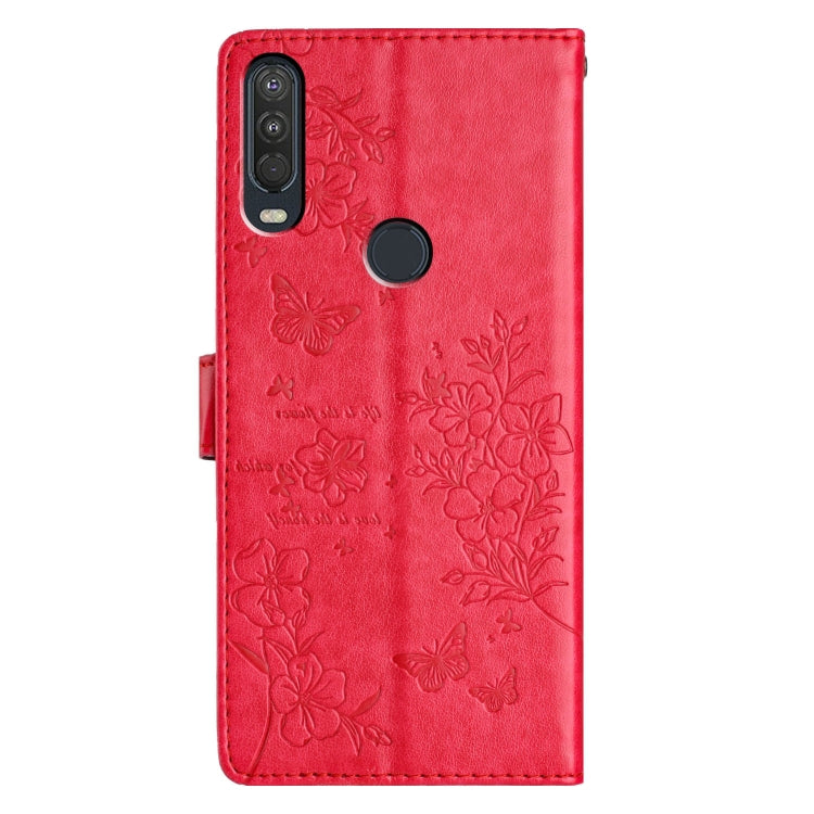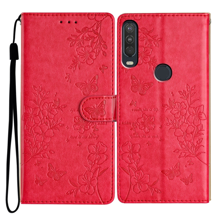 For Motorola P40 Power Butterflies and Flowers Leather Phone Case(Red)
