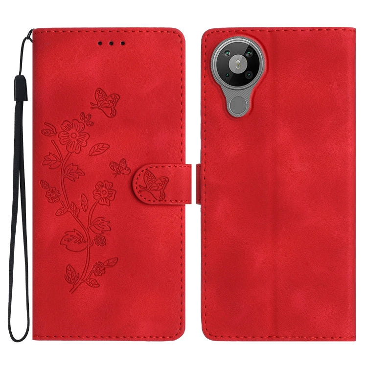For Nokia 5.3 Flower Butterfly Embossing Pattern Leather Phone Case(Red)