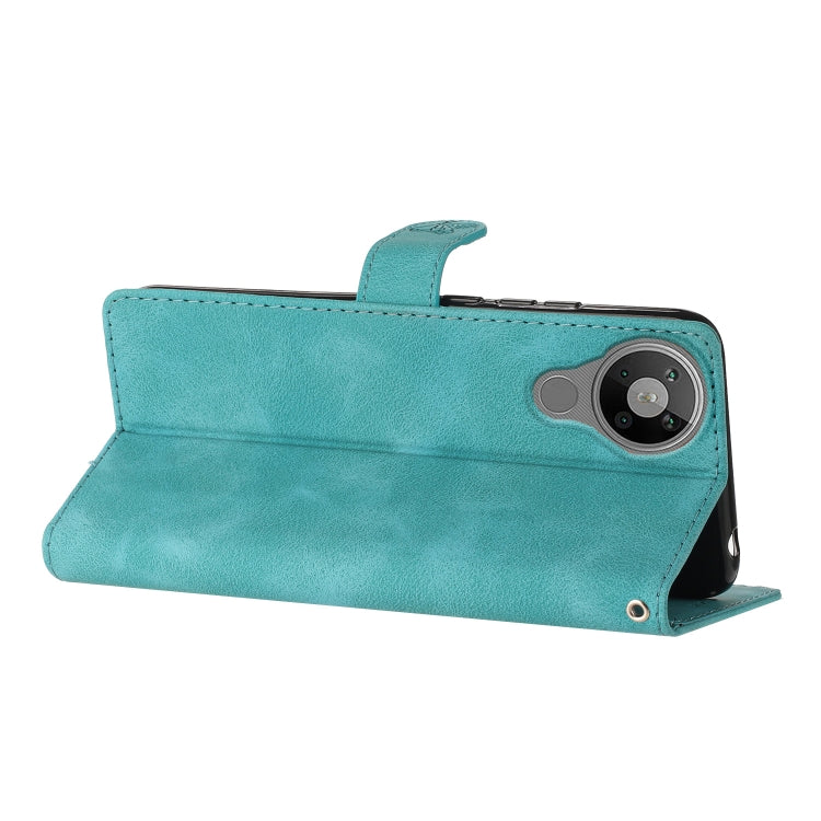 For Nokia 5.3 Flower Butterfly Embossing Pattern Leather Phone Case(Sky Blue)