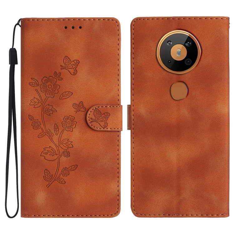For Nokia 5.4 Flower Butterfly Embossing Pattern Leather Phone Case(Brown)