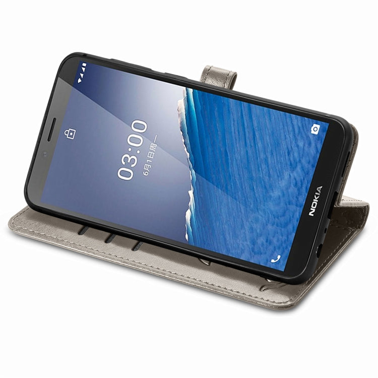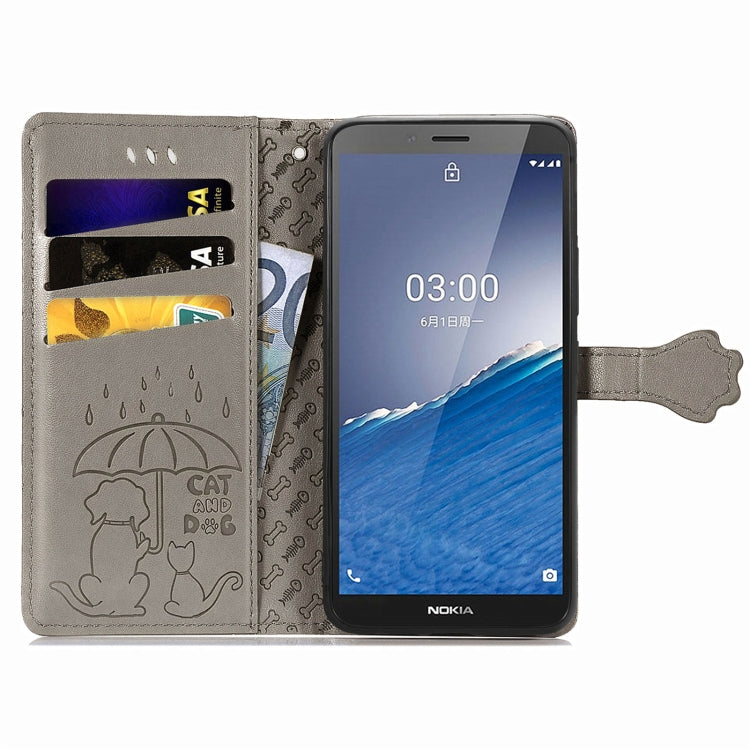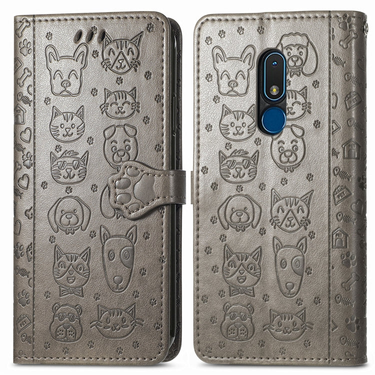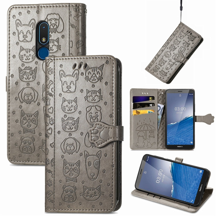 For Nokia C3 Cute Cat and Dog Embossed Flip Leather Phone Case(Gray)