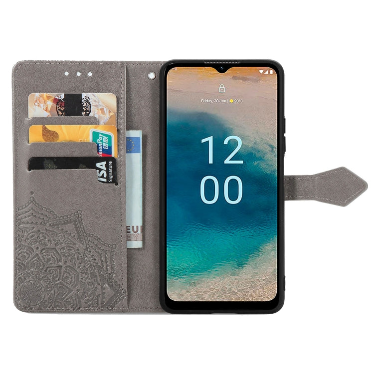 For Nokia G22 Mandala Flower Embossed Leather Phone Case(Grey)