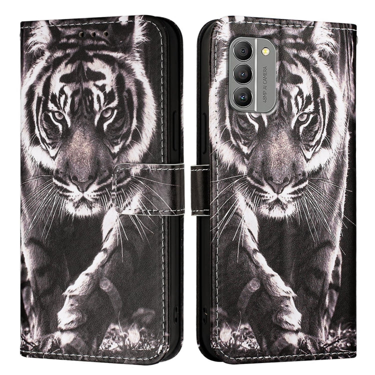 For Nokia G400 Colored Drawing Pattern Plain Weave Leather Phone Case(Black And White Tiger)