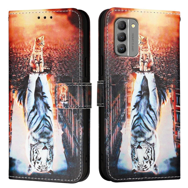 For Nokia G400 Colored Drawing Pattern Plain Weave Leather Phone Case(Cats And Tigers)